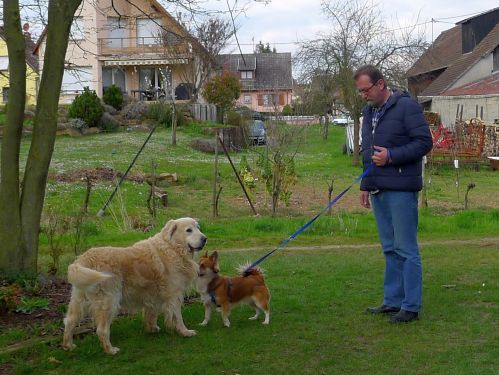 Inzwischen hat er schon sehr schön gelernt auf uns zu achten, bleibt auch in der Nähe und kommt auf Zuruf sofort zurückgewetzt. Lediglich gut riechende Hündinnen und ihre Duftmarken machen ihm schwer zu schaffen. Dann ist er nicht mehr ansprechbar.