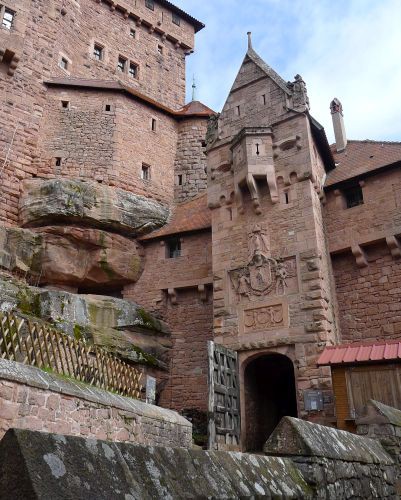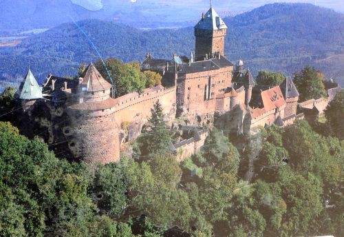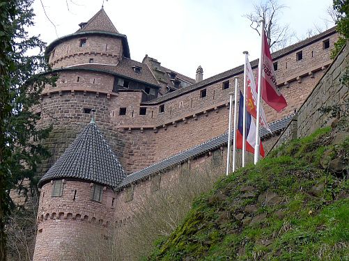 Und dann gehts weiter. Rechts auf den Berg wollen wir. Dort liegt Haut Koenigsbourg. Über etliche Serpentinen gehts ewig bergauf bis auf fast 1.000 m, und dann haben wirs geschafft.