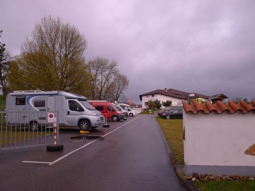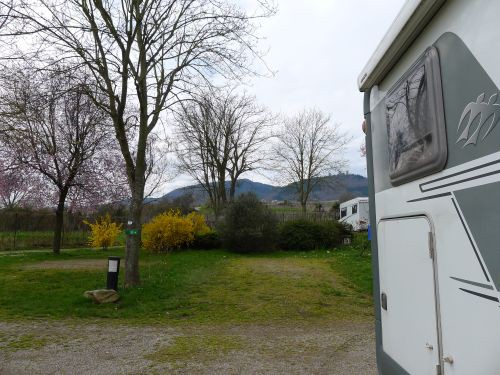Dann gehts weiter nach Friesenheim, aber der Platz ist in Hörweite bzw. -nähe der Autobahn. Also wieder retour nach Meißenheim, und hier stehen wir wunderbar ruhig. Ich wäre zwar gern nach hinten auf die Wiese ausgewichen, aber Peter will mitten rein. Auch gut.