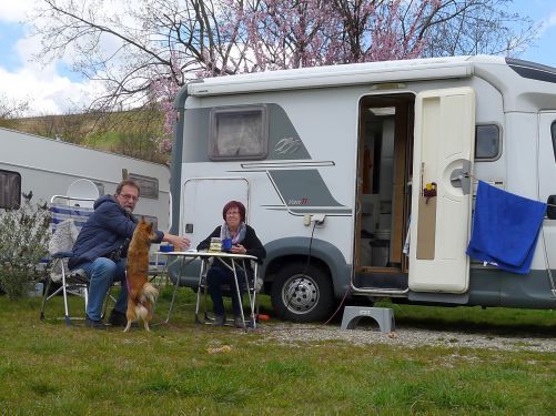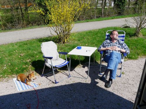 Auch heute ist wieder herrliches Frühlingswetter und nach dem Frühstück beschließen wir, nach Rheinmünster zu fahren. Dort auf dem Stellplatz schauen wir uns an und stellen fest, dass wir eigentlich auch heimfahren könnten, denn in der Sonne sitzen können wir dort auch. Also Rückwärtsgang rein und ausgeparkt...