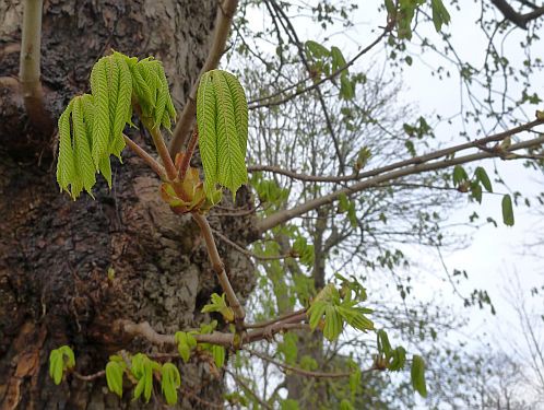 So, genug alte Mauern, ich wills wieder bunt haben, und wir fahren wieder runter und gleich nach Ribeauville. Hier ists schon Frühling und die Kastanien haben schon Blätter.