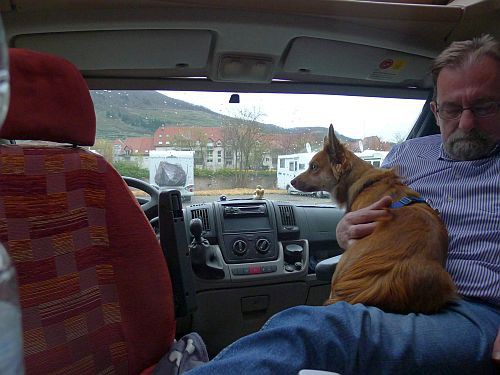 Als ich meinen Bericht auf die Homepage hochladen will komm ich irgendwie an den blöden Wischdingbildschirm, zerschieße mir nen Link und noch irgendwas, und nix geht mehr. Plötzlich ist meine Seite zwar hochgeladen, aber schreibgeschützt, die Bilder sind im Nirwana verschwunden bzw. nicht mehr verknüpft, hochladen oder bearbeiten kann ich die Seite auch nicht nochmal, denn dort liegt ja die schreibgeschützte und ist nicht zu überschreiben und auch nicht mehr runterzuladen, also ich krieg Schnappatmung und mach dann, nach vielen Reparaturversuchen und einem Regenspaziergang mit Carlchen, den ganzen Kram neu.