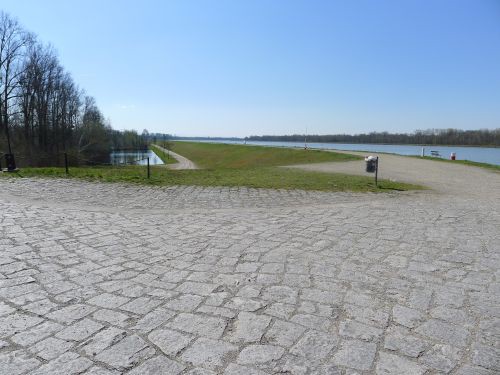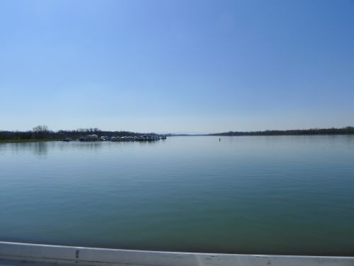 und dann führt uns die Navi-Tussi seltsame Wege, und so kommen wir südlich von Straßburg am Rheinkraftwerk vorbei, bzw. überqueren am Kraftwerk den Fluss, der durch den Stau eine beachtliche Breite hat.