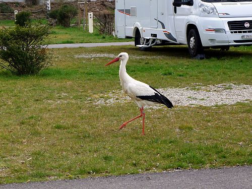 Nachts wars Gas all, aber wir ignorieren es und schlafen weiter, bis wir von strahlendem Sonnenschein geweckt werden. Beim Morgengassi sind die Störche schon weniger furchteinflößend. Carl lernt.