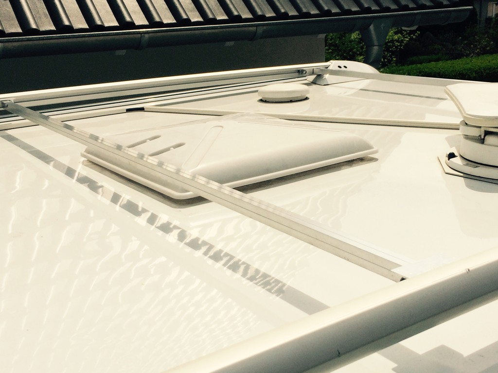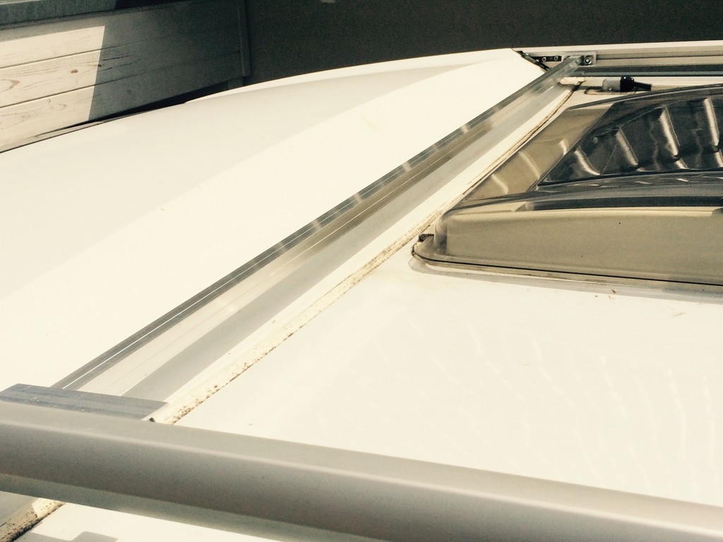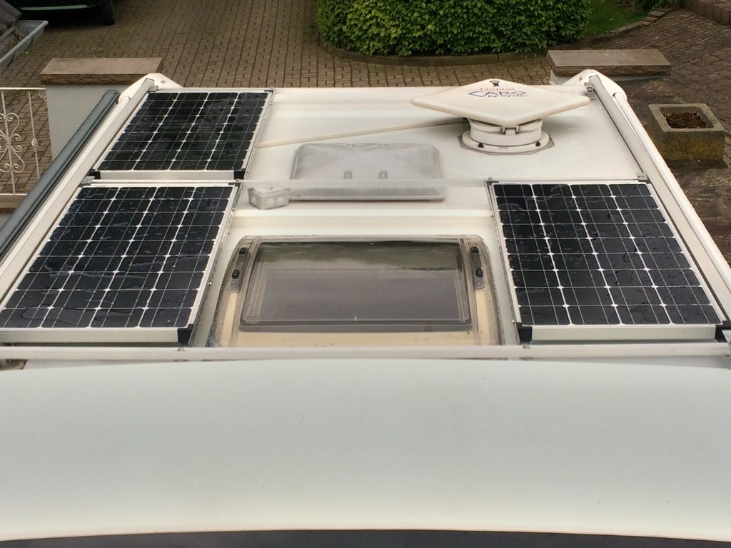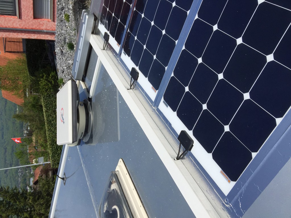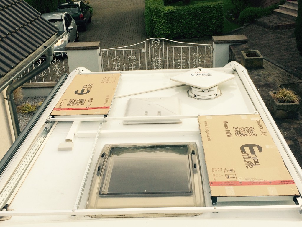 Aufgrund der Dachreeling (Verschattung) kommt ein flexibles klebbares Panel nicht zum tragen. Außerdem bietet mir die Dachwölbung im vorderen Bereich auch als Spoiler für alles was auf dem Dach verbaut ist für den Fahrtwind. Die Panelbreite ist max 550 mm möglich auf jeder Seite. Dazu muss ich auf der Linken Seite die Panel-Spoiler jeweils mit einer Nut von unten versehen, da ich das Kabel für die SAT-Antenne nicht verlegen möchte.