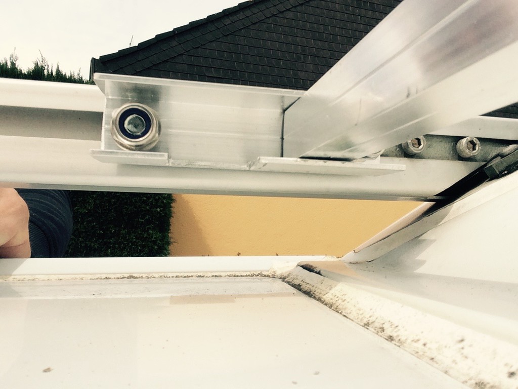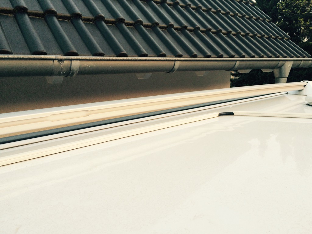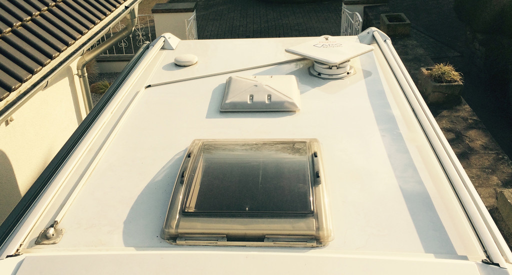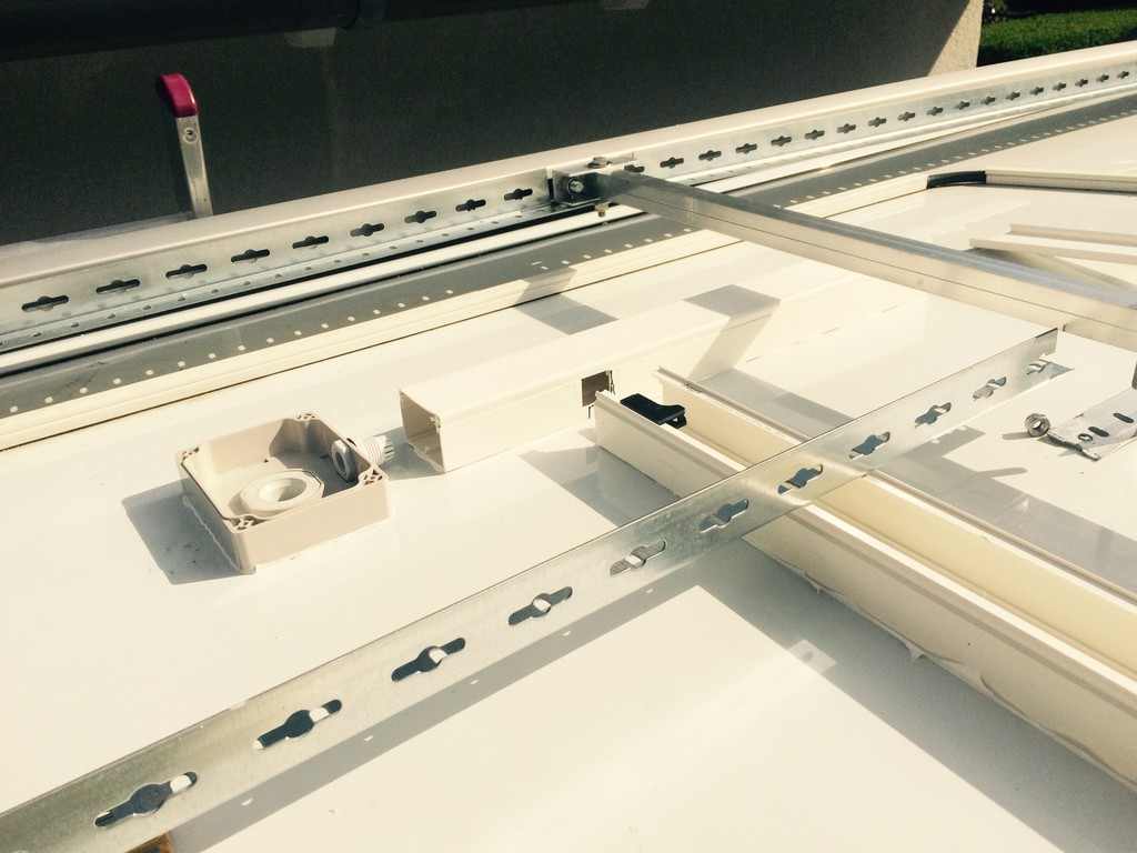 Die Kabel habe ich in handelsübliche weiße Kabelkanäle verfrachtet und diese auf das Dach geklebt.