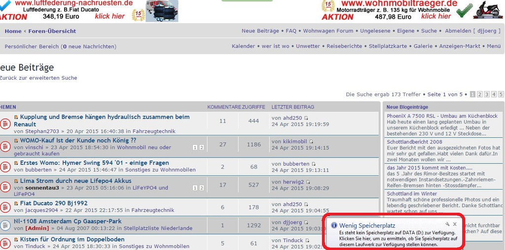Wie bekomme ich diese Meldung weg. Die kommt alle fünf Minuten und nervt extrem. :help: PC läuft mit Win 7. Helft mir mal bitte. ![]() Speicher freimachen oder aufrüsten . Hallo, da der Platz auf der D:-Partition zuneige geht ist musst du wohl selber schauen welche Dateien gelöscht oder ausgelagert werden können. Logdateien, Updatesicherungen und temporäre werden normalerweise auf C: gespeichert. Um diese "Schmutz-Dateien" los zu werden, gibt es eine Reihe Tools und Anleitungen im WWW. Auf D: (Der Name "Data" deutet darauf hin) liegen vielleicht/wahrscheinlich nur Nutzdaten wie Bilder, Texte und was sonst noch so vorn dir gespeichert wird. Diese lassen sich natürlich gut auf eine externe USB-Festplatte auslagern. Nur solltest du dabei schon wissen, ob irgendwelche Programme wie z.B. Bildbetrachter Verknüpfungen zu diesen Daten angelegt haben. Diese Verknüpfungen funktionieren dann natürlich nicht mehr. (Die Idee, Systemdaten und Programme von den Nutzdaten zu trennen und dafür eine D: Partition anzulegen ist übrigens gut) Einen "Supertipp" wird dir in dem Fall aber wohl niemand geben können, ohne genauer auf das System geschaut zu haben. Öffne als Administrator die Computerverwaltung. Dann gehe dort auf Datenspeicher. Dann auf Datenträgerverwaltung. Dann wähle mit der rechten Maustaste das Laufwerk aus. Dann aus dem Menüfenster die Eigenschaften auswählen. Dann den Reiter allgemein wählen. Da kann man dann das Laufwerk bereinigen. Dann dürfte die Meldung nicht mehr kommen. |