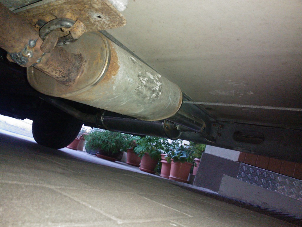 Die "Fiat-Fachwerkstatt" hat nun Vor- und Nachschalldämpfer ausgetauscht,das Endrohr abgeflext (da für den Alko-Rahmen nicht