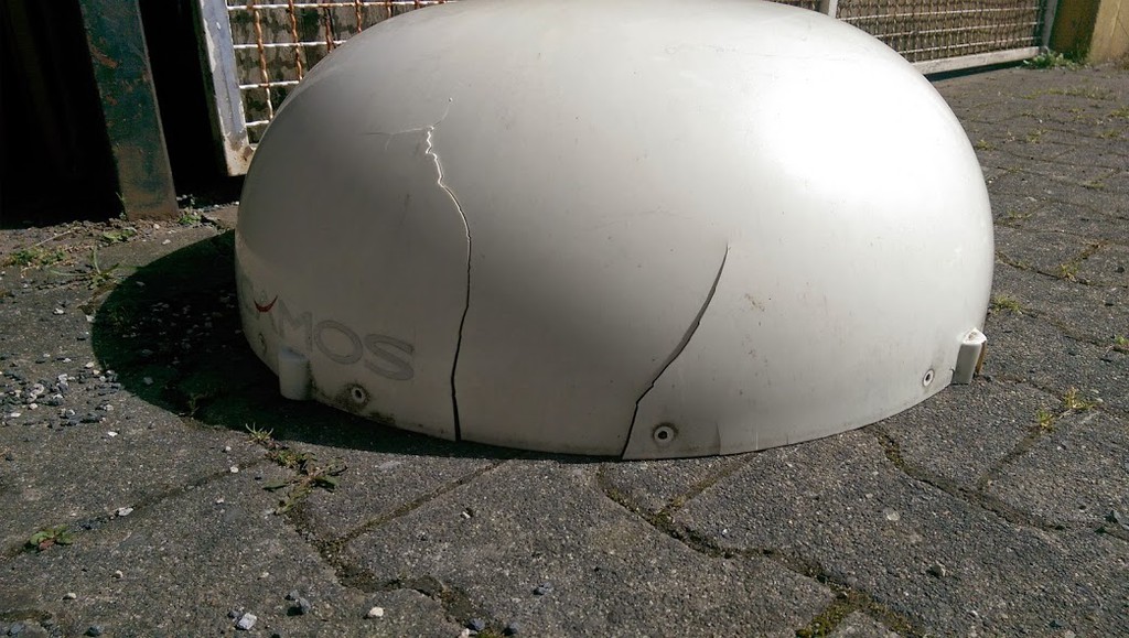 Wenn die Kanten der Kuppel noch voreinander passen, dann würde ich es zuerst mit dem Kunststoffkleber versuchen. Fehlen kleine Teile, dann mit Matten von hinten laminieren.