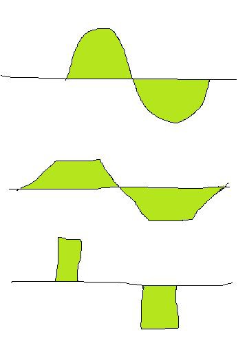 Auf dem Bild Oben Sinus, unten Varianten der modifizierten Sinus WR