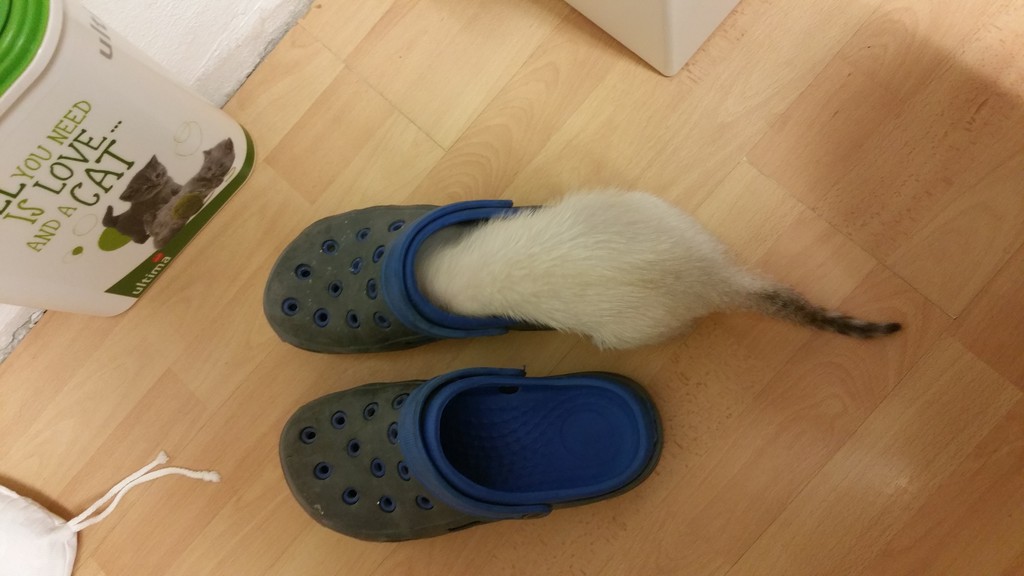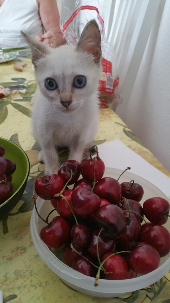 Christel das müsste ich jetzt guuurgeln ? Flintriemen ist sowas wie unser Carl, ein ausgekochter Chaot, Flitzpiepe.... ..... und die sind soooo süß. Wie schön, dass sie es geschafft hat. Ich finde es toll, dass ihr euch der Kleinen angenommen habt. Markgräfin Sie guckt etwas empört... :lach: Ein süßes Ding! Wie schön, dass sie bei Euch nun ein Zuhause findet....happy ending! :love: Und wenn sie erst einmal zu einer hübschen Katzendame herangewachsen ist, was bei Katzen ja schnell geht...wird Angelo seine Meinung über sie vielleicht ändern.... :mrgreen: Gibt es was Neues von der Katzenfront? Hat Angelo eingesehen, dass das Mädel sein Leben nur bereichert? Und wie geht es der Kleinen? haha, Angelo ist ein Süditaliener. Der ist Macho und sieht nix ein :kuller: Genau Jochen, her mit den Infos. Die Kurze hat bestimmt schon die ersten Siege eingefahren Na ja laaangsam gibt es erste postive Momente. Stella wird nicht mehr bei jedem Aufeinandertreffen angefaucht, sondern wohl eher nur noch bei jedem zweiten Trotzdem ist Meister Angelo meiner GG sichtlich beleidigt. Die "Lager" waren ja früher ziemlich eindeutig Jochen + Gizmo vs Rebecca + Angelo während Gizmo ja jeden Tag mit mir in die Arbeit fährt, war Angelo da immer bei Rebecca beim Morgenkaffee hinter ihr im Stuhl während der Arbeit in der Nähe Schreibtisch und Nachts in Ihrem Bett am Fußende. Ich war da auch sehr erleichtert drüber, weil wann man sich Nachts bewegt mit den Füße und der Kater schlechte Laune hat dann bekommst schon mal einen Tatzenverweis in die Füße :roll: Und was passiert jetzt ? Kater Angelo ist seinem Frauchen sichtlich beleidigt und straft sie damit, dass er sich deutlich mehr in meine Nähe bewegt :eek: und das obwohl Stella keineswegs zeitlich mehr bei Rebecca als bei mir ist. Es sieht tatsächlich eher so aus, als wenn er sie "abstraft". Ich bin ja mal gespannt ob sich das wieder normalisiert. Wobei Angelo es sicher nicht leicht hat, früher war er eindeutiger Chef im Ring. War Gizmo mal "im Weg" hat es immer einen klaren Sieger gegeben = Angelo. Seitdem Gizmo aber sich als Onkel von Stella fühlt ist es auch hier andersrum: Angelo faucht Stella an = Gizmo geht auf Angelo los . Ich fürcht das fördert auch nicht unbedingt das "Anpassen" andererseits werde und kann ich Gizmo nicht dafür bestrafen, dass er die Rolle des großen Bruders übernimmt, oder ? Hier mal ein paar Bilder von Gestern der Lady "Was ist nur in diesen komischen Dingern drin ? " ![]() "Es gibt Kirschen" ![]() "Siehst Du meinen Blick ? Ist klar wem die jetzt gehören? " ![]() "Was macht dieser kleinen Fellball da nur immer ? " ![]() Das hört sich gut an. Die Kleine sieht gut aus. Und Angelo. Also Casimir macht das hier so: Sind die Hunde im Bett, wo er ja tagsüber alleine liegt - er macht das quasi die Wachablösung :lol: , dann kommt er und legt sich quer auf mich drauf und zeigt den Hunden gan klar, wer Chef im Ring ist. Ich hoffe dass Angelo sich mit Stella anfreundet und dann beide bei Deiner Frau sind. Ich drücke Euch die Daumen. Das Beste ist dieser Minischwanz :ja: hoffentlich rufst du damit nicht unsere Tierspezialisten auf den Plan von wegen Rute, Lunte oder Zipfelchen