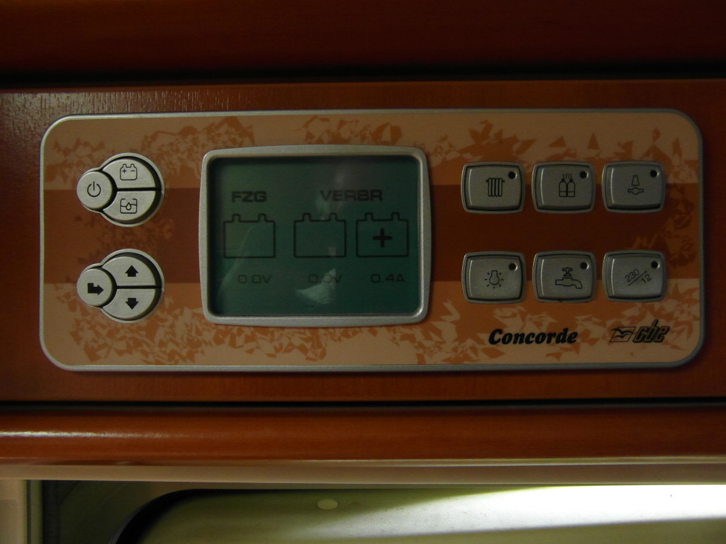 Die Batteriespannung liegt bei 14V und das Panel zeigt 0,0V. Da das Panel die eigentliche Spannung nicht "sieht", können keine Verbraucher eingeschaltet werden. Das Panel leuchtet und kann auch bedient werden. Abends funktionierte noch Alles und am nächsten Tag war alles "tot"